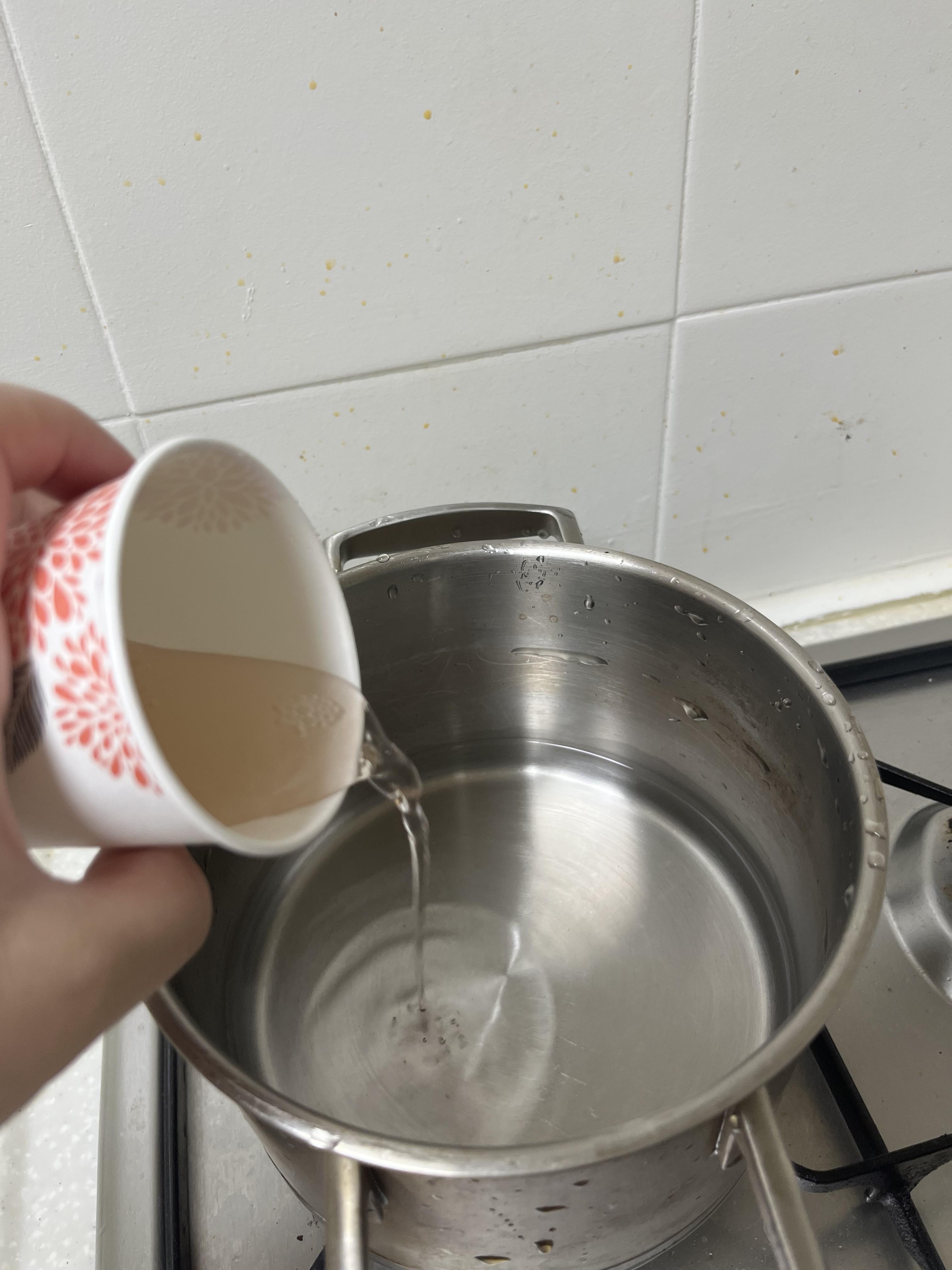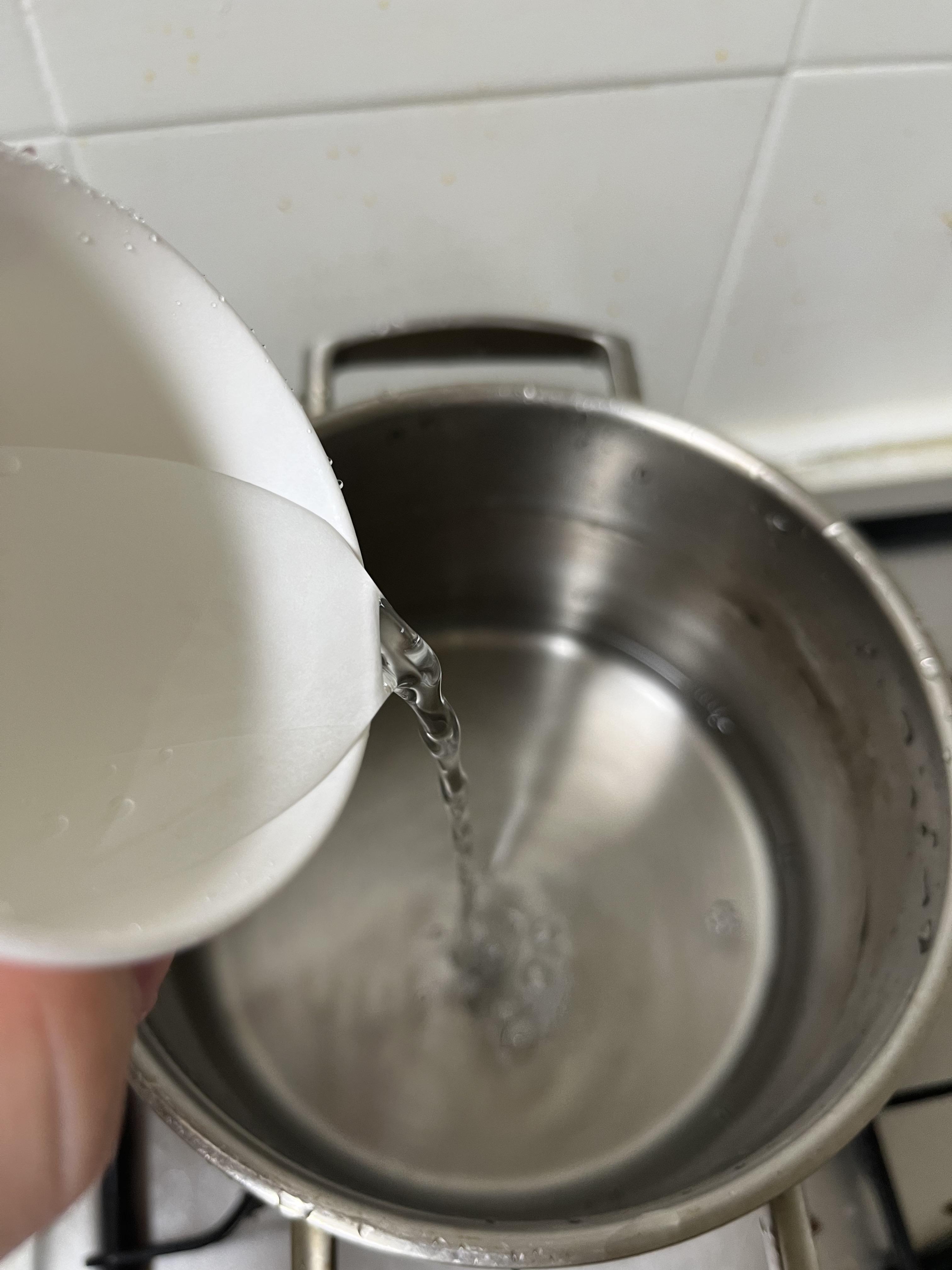 냄비에 종이컵으로 물 두컵 넣었습니다.