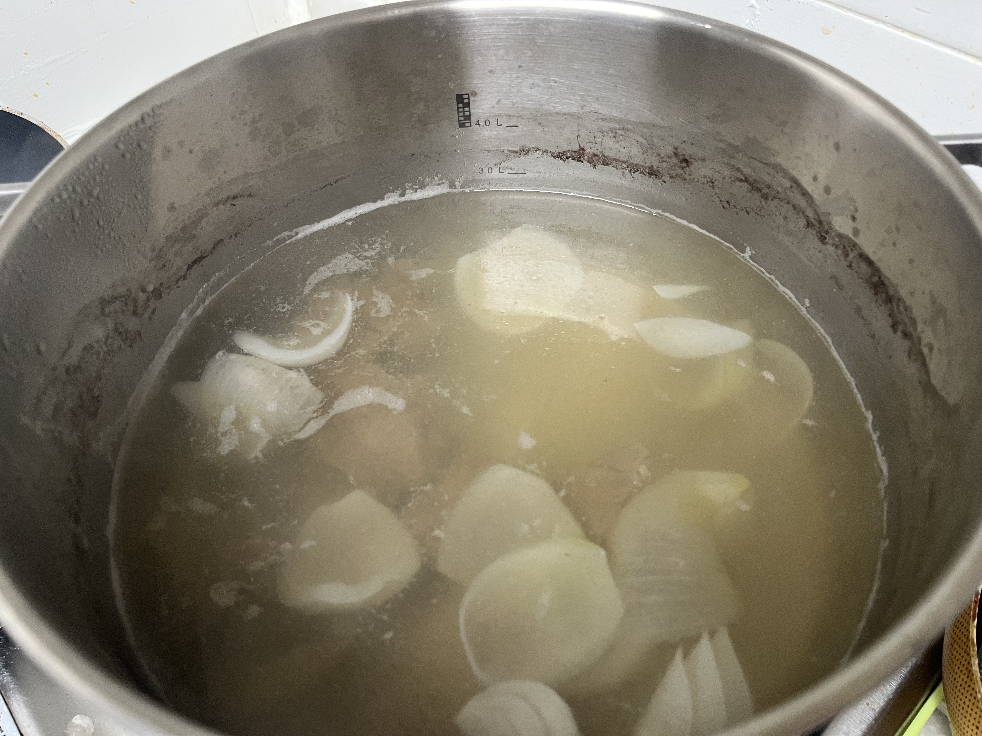 소고기와 양파를 넣고 이유식 육수를 만들었어요